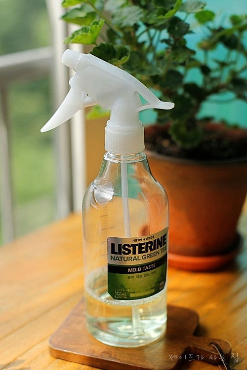 리스테린을 물과 1:1 비율로 희석합니다. 이때 사용하는 물은 일반 수돗물로 충분합니다. 희석한 리스테린은 스프레이 용기에 담아 준비합니다.